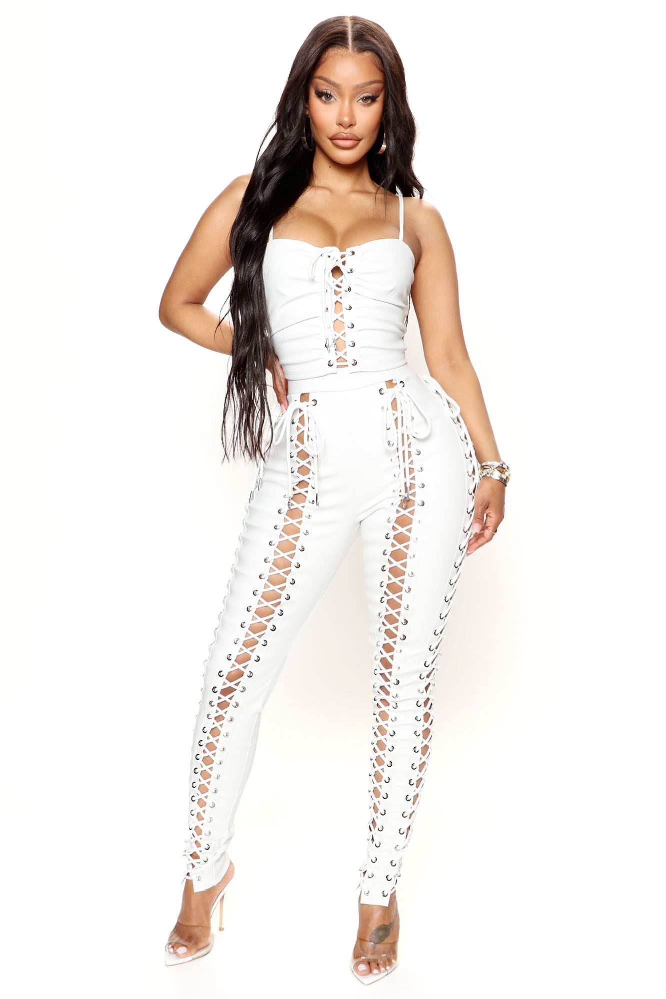 Be the first to review “More Lace Up Faux Leather Pant Set – Off White” 取消回复